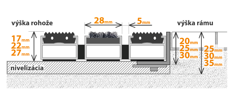 Výška rohože: 27, 22, 17 mm