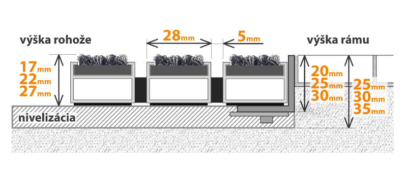 Výška rohože: 27, 22, 17 mm