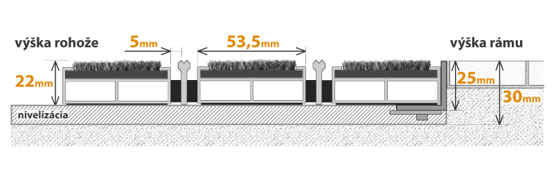 Konštrukcia: široké hliníkové profily spojené nerezovým lankom s pridaním hliníkovej škrabky
