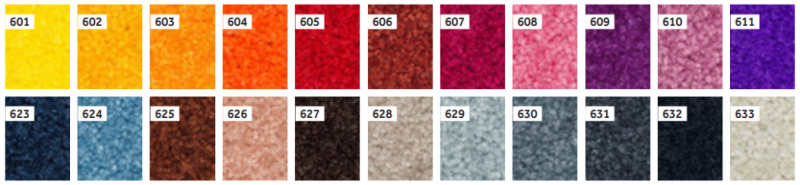 Štandardná šírka s olemovaním: 60 cm, 75 cm, 85 cm, 115 cm, 150 cm a 200 cm